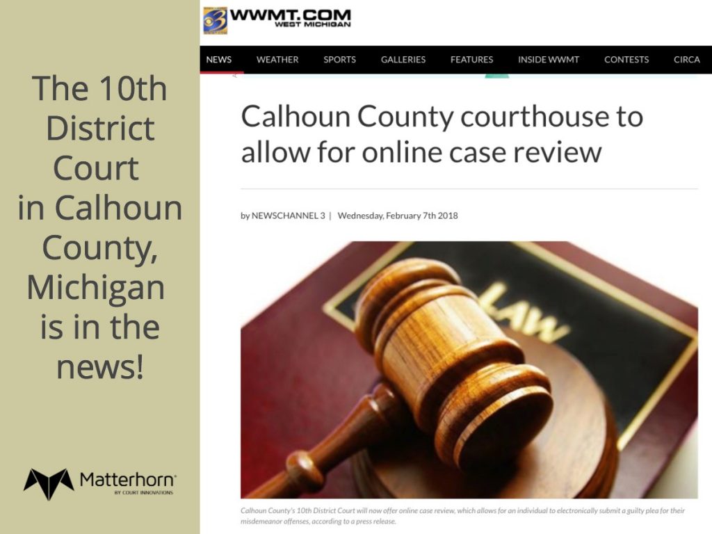 Michigan’s 10th District Court launched Matterhorn Online Plea and two news outlets spread the word.